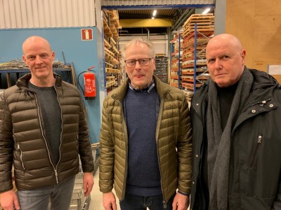 Bilde: Fabrikksjef Lars M. Skog, president Petter og adm.dir. Karl Inge Rekdal.