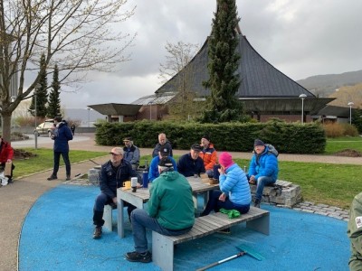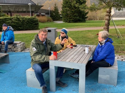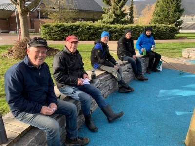 Oppmøtet etter pause i 2 måneder var upåklagelig. Veret var litt surt med kald vind. Men vindtette klær og hue på hovudet, for den som har lite hår, hjalp godt.
