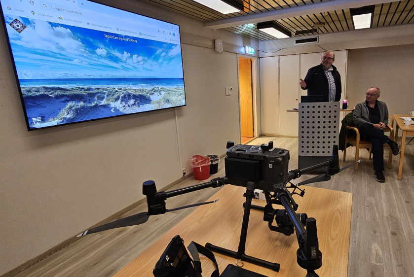 6. Dronefotograf Arild Solberg fortalde om arbeidet sitt: å fotografere eller videofilme, etter oppdrag eller på eige initiativ – året rundt. Med foto som passion/ lidenskap i 35 år! Begynte å ta bilete som 8-åring. «Oppi lufta» frå 2008. Fotograferer og programmerer sjølv. Først med helikopter- «plattform», etter som dronene på den tida (2011) ikkje var bra nok. Oppdragsgjevar Statens Vegvesen har dei siste ti åra sytt for at Arild har nok objekt å filme/ fotografere. Også kulturavdelingar på fylkes- og nasjonalt nivå har oppgåver for Arild. Kvart av bileta er på ca 3 GB (Giga-byte = 3 milliardar bytes) I Noreg er det 300 drone-pilotar i den tyngste/ beste klassen. Arild er ein av desse. Han har løyve til å føre droner til 7000 m høgde over bakken. Alt blir fotografert opp mot GPS, slik at nøyaktig biletposisjon blir lagra. Når han så linkar posisjonane opp mot eit kart eller bilete, får han opp supplerande bilete frå same staden. Dette er å programmere opptaka – noko som er betydeleg meir tidkrevjande enn sjølve fotograferinga. Resultatet er rett og slett forvitneleg,- og det kan nytast på www.360aircam.com, http://360norway.net eller på www.arildsolberg.com om ein vil ha kontakt. Det er berre å setje seg ned og «leike seg heime», i følgje Arild. Den same opplevinga får ein i alle deler av verda, berre ein har nettverk. På Arild sine nettsider er alt ope og gratis, anten du vil nyte naturen i Noreg eller nordlyset som flammar over himmelen. «Hadde eg fått velje yrke ein gong til, ville eg ha valt akkurat det same!»