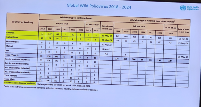 Fare for internasjonal spredning gjør fortsatt polio til en internasjonal folkehelsekrise, sier Verdens helseorganisasjon (WHO), som har som mål å utrydde polio innen 2027. Så lenge det fortsatt er i polio i verden, er det fare for spredning.
