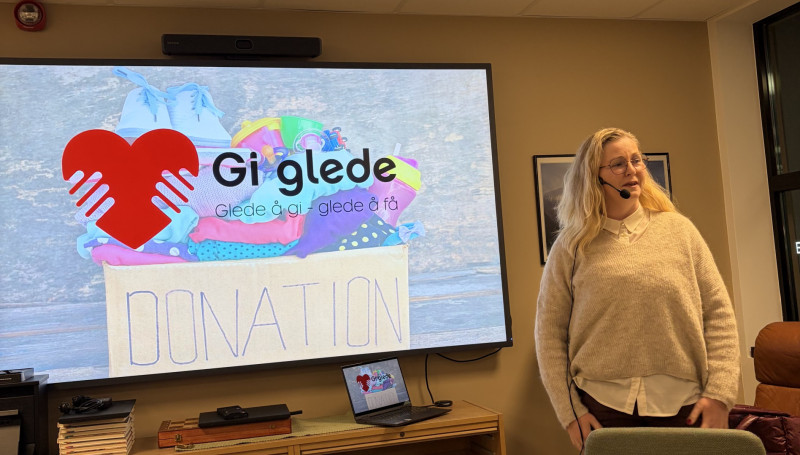 Dagleg leiar Therese Hovland orienterte om organisasjonen Gi Glede. Gi Glede er ein hjelpeorganisasjon som held til i kjellaren på Hjøregården i Aure sentrum.Dei har halde til i Hjørnegården sidan 2024.