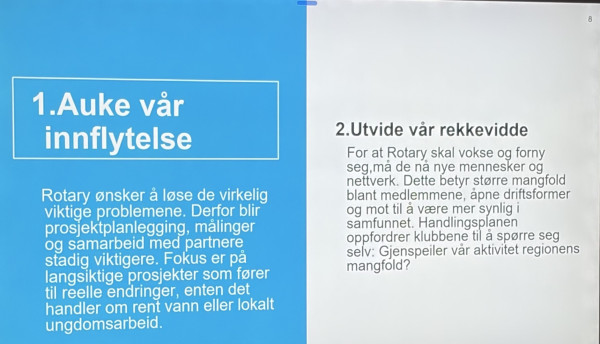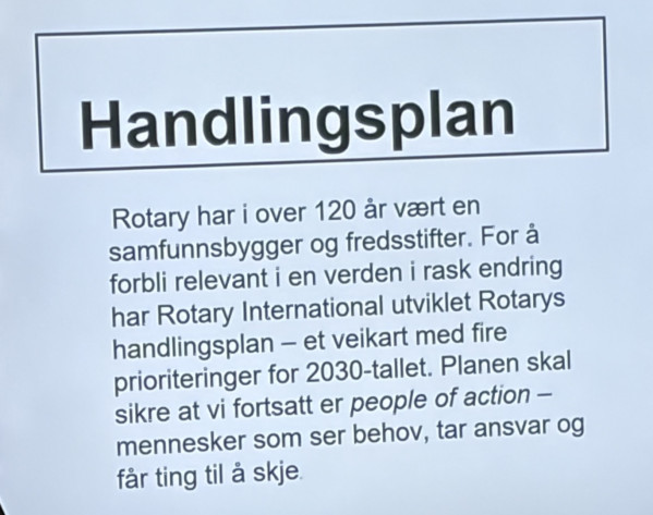 Etter kaffe snakka president Kristin Grebstad om Rotary sin handlingsplan.