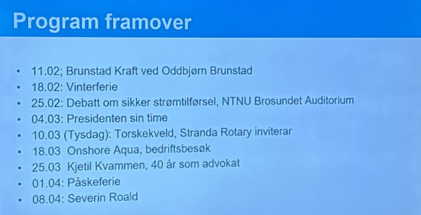 Deretter gjekk ho gjennom programet som blir framover. Programmet ligger på Event appen til Rotary.
